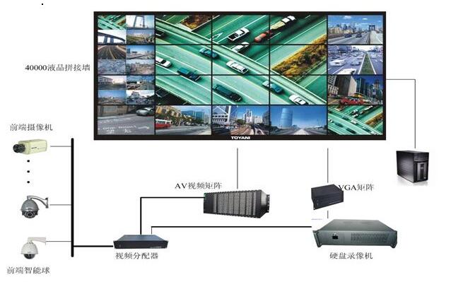 典型的電視監(jiān)控系統(tǒng)主要由前端監(jiān)視設(shè)備、傳輸設(shè)備、后端存儲(chǔ)、控制及顯示設(shè)備這五大部分組成,其中后端設(shè)備可進(jìn)一步分為中心控制設(shè)備和分控制設(shè)備。前、后端設(shè)備有多種構(gòu)成方式,它們之間的聯(lián)系(也可稱作傳輸系統(tǒng))可通過(guò)電纜、光纖、微波等多種方式來(lái)實(shí)現(xiàn)。