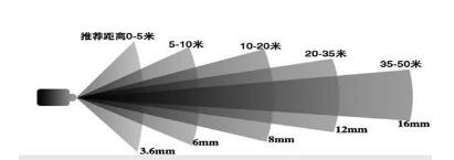 根據(jù)所需監(jiān)控范圍來確定,監(jiān)控攝像頭所用的鏡頭與單反相機類似,按照畫幅大小一次排列為2.8mm, 3.6mm, 4mm, 6mm, 8mm, 12mm, 16mm, 24mm等。 毫米數(shù)越小,鏡頭所攝入的畫面越寬,但與此同時所照的距離越近;毫米數(shù)越大,監(jiān)控攝像頭所攝入的畫面越窄,但同時所照的距離越遠。