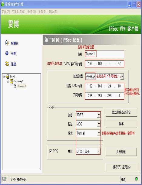 備注:IPSEC VPN服務(wù)端網(wǎng)段為192.168.24.0/24,撥號主機(jī)IP為192.168.0.47.