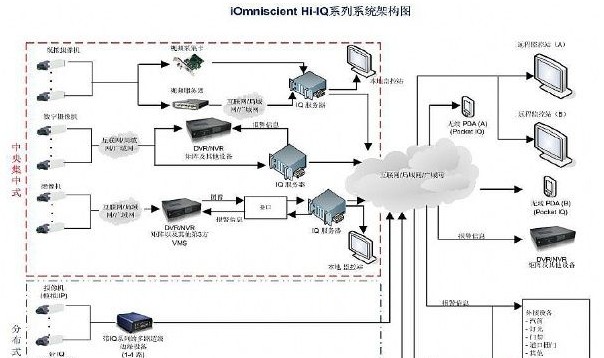 所有影像都流到一個中央點,利用一到多臺服務器接收數據